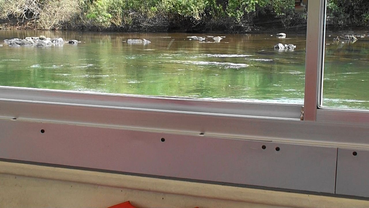 乗船すると直ぐに最初の難所「碁点(ごてん)」を通りますが、冒頭、船頭の方から今は渇水の時期と説明有り、増水すれば岩が水面下に沈み碁石を並べたように岩が突起して見えることから名付けられているようです。