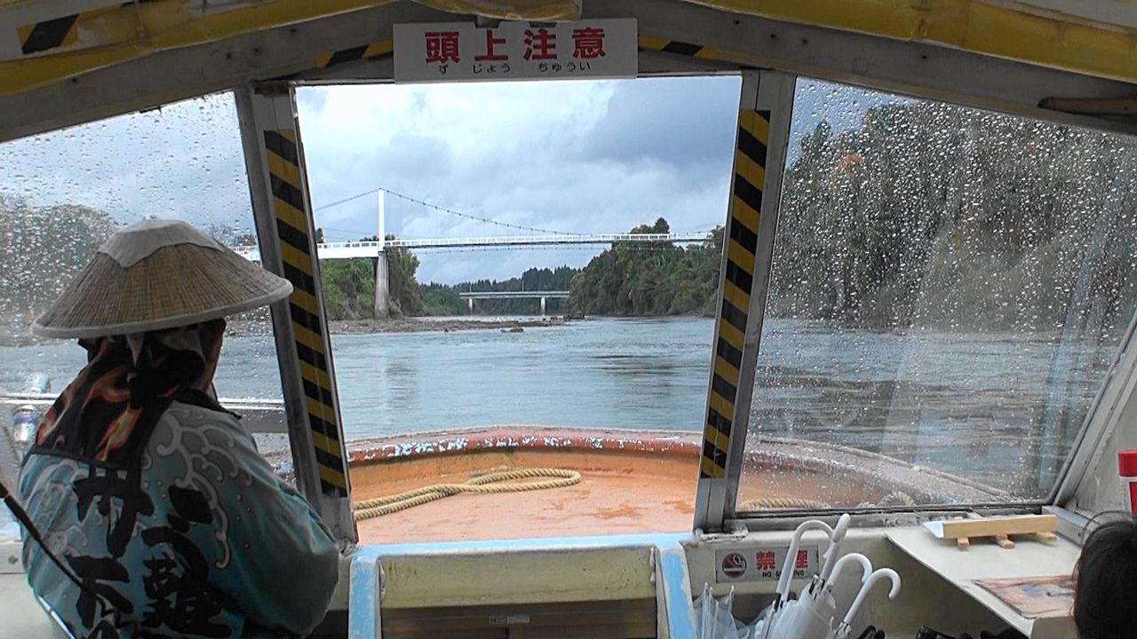 三難所とは「碁点」「三ヶ瀬」「隼」の三か所で、これらの付近では昔から数多くの船が難破し、船頭も恐れるほどの難所と言われている。最も川の水位によってその難易度に差はあるようですが...。予約済みの11時50分発の船に乗船。