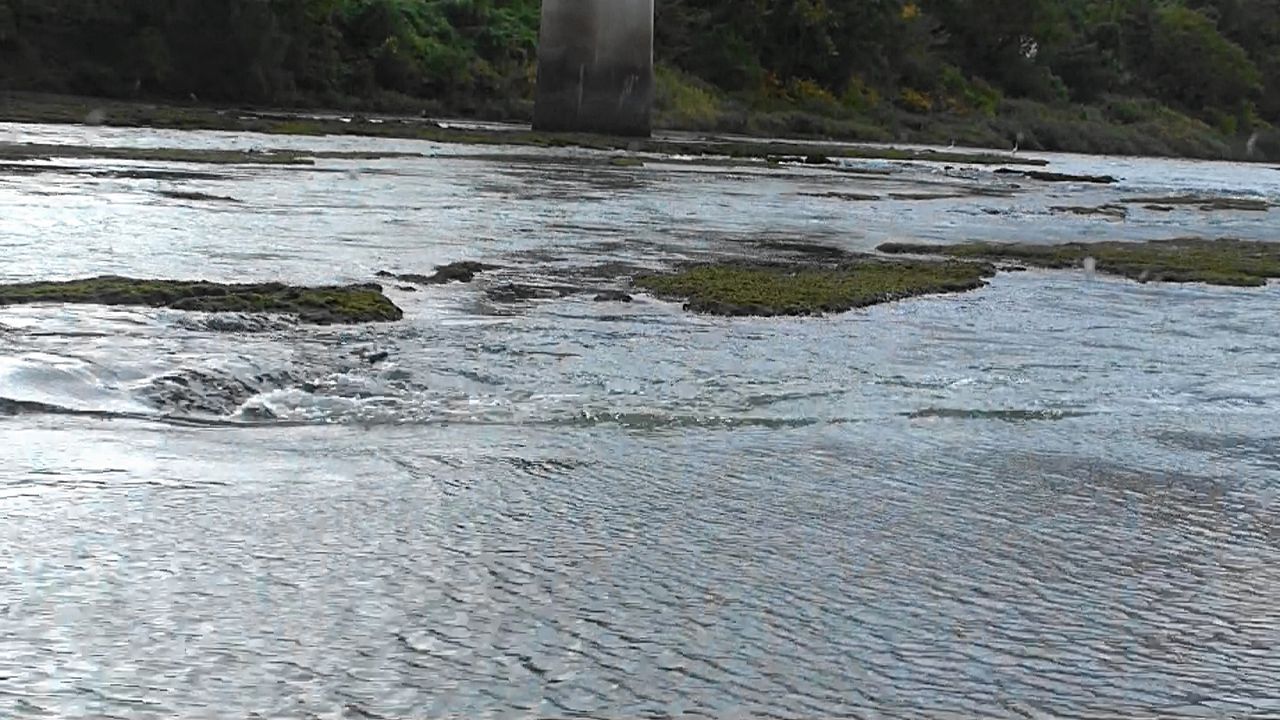 三ヶ瀬橋に近づくと、川底に細い岩礁が三層をなす次の難所「三ヶ瀬(みかのせ)」を通ります。