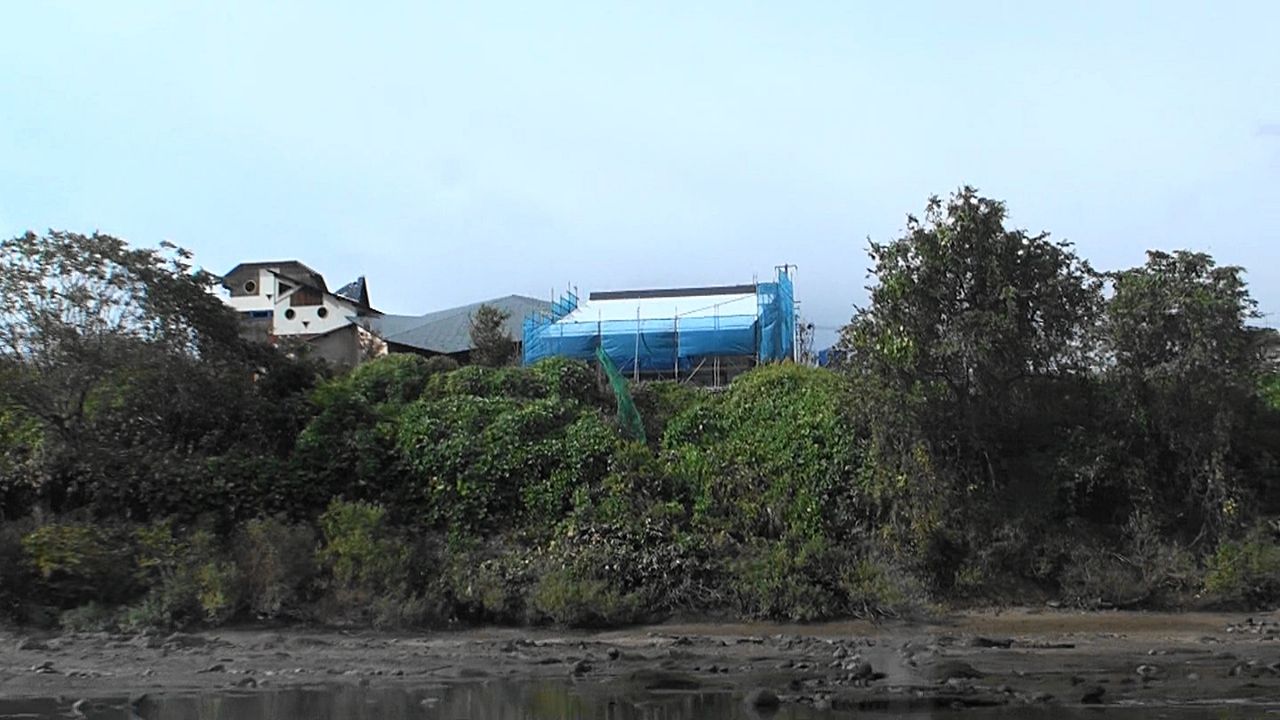 左手に猫屋敷が見えてきます(この屋敷の中では招き猫を制作しているようです)。