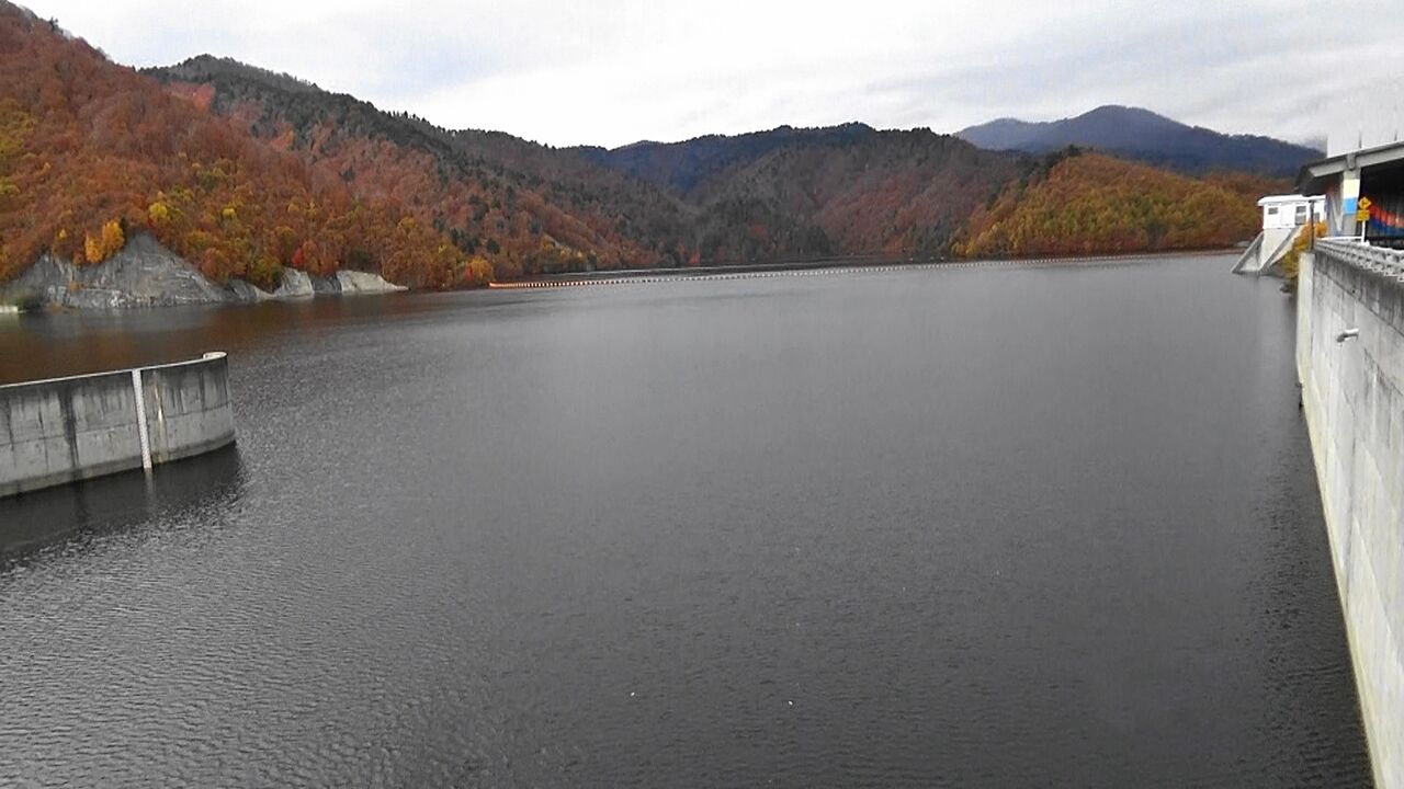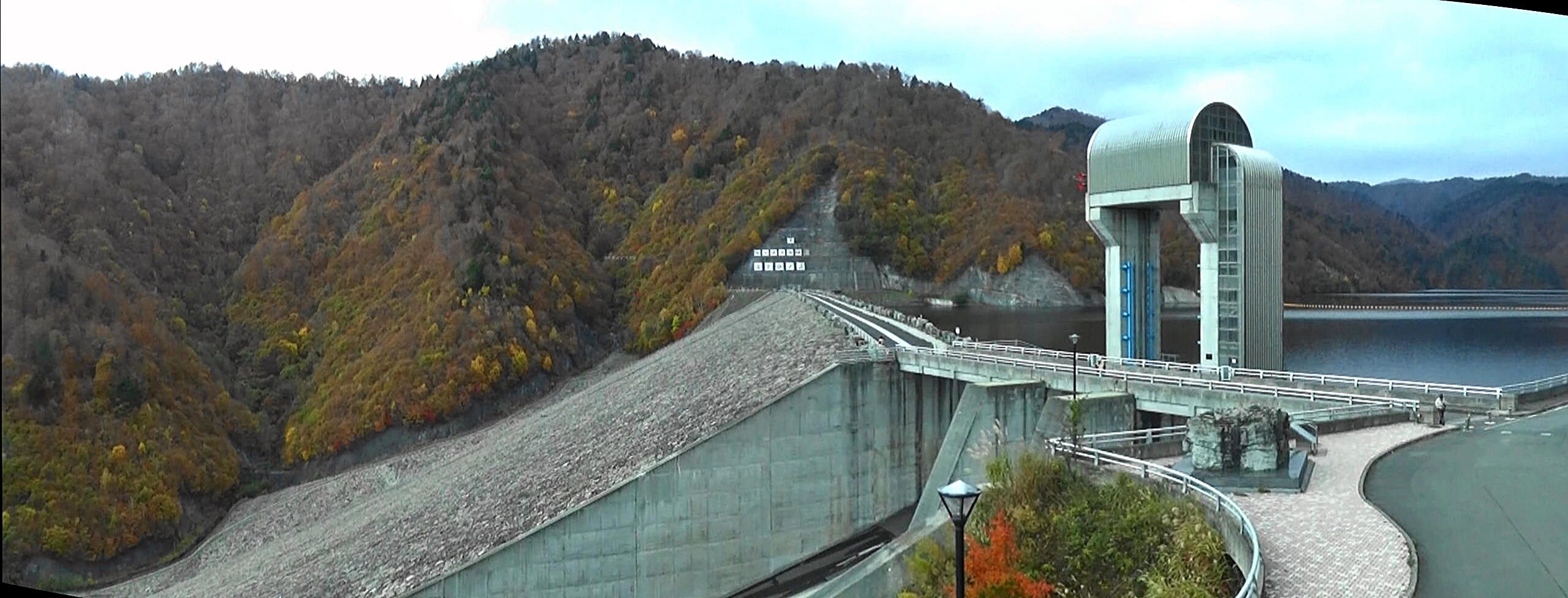 最後にダム堤防から紅葉を一望して、今日のお宿に。