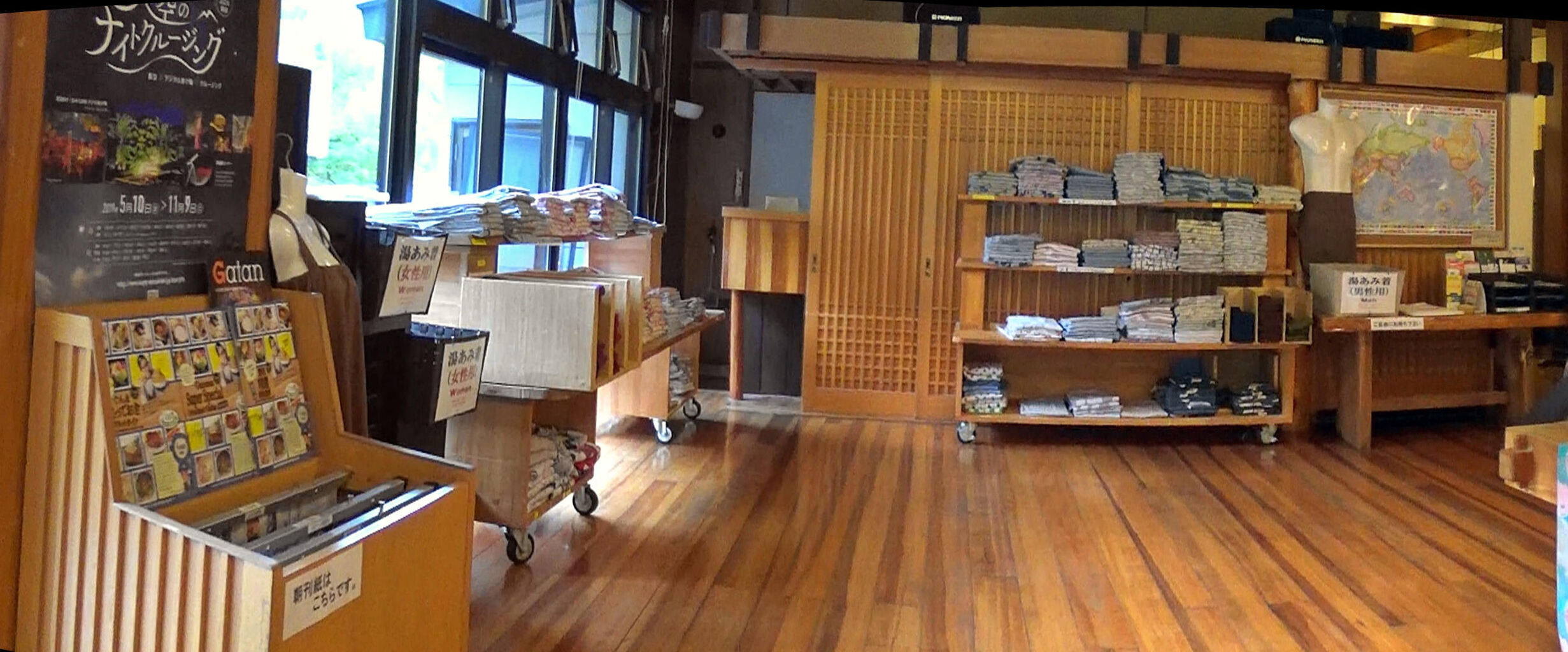 その後、男女別の浴衣と、混浴時の湯あみ着をピックアップして(本年4月より男女とも湯あみ着を着用しての入浴方法に変更)、