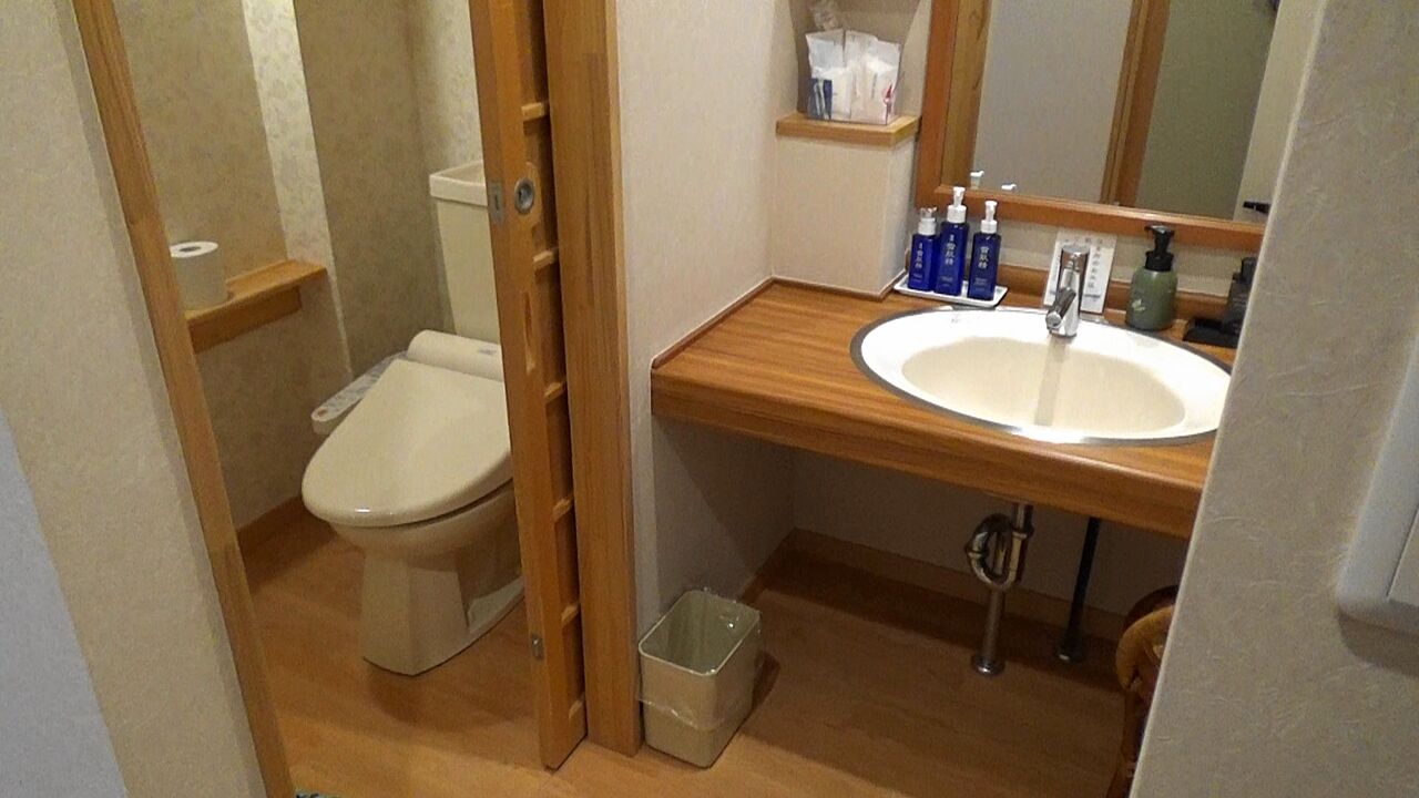 フロントでチェックインを終え、予約済みの和洋室へロビー奥の階段を降り、