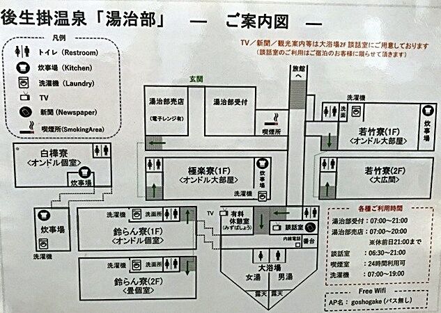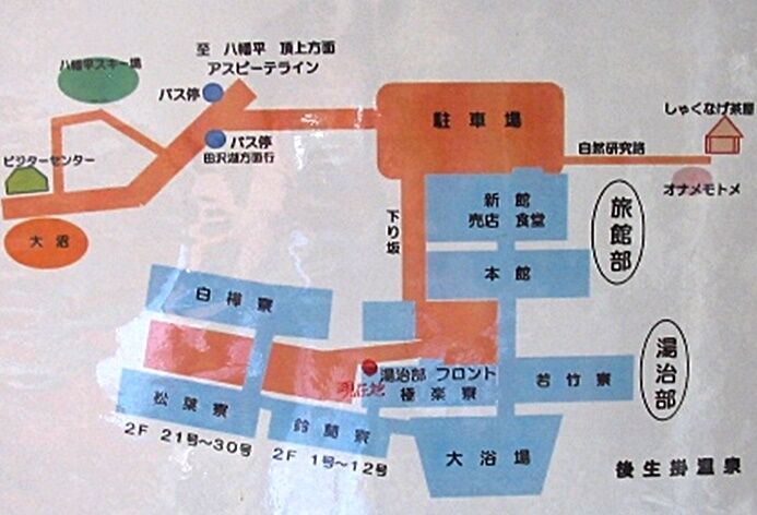 尚、湯上り後湯治部フロントに立ち寄り確認したのですが、ここの湯治部は下図のように大浴場の周りに旅館部よりも多数の建物が存在していることに驚嘆、湯治村と呼ばれている謂れが理解できます。