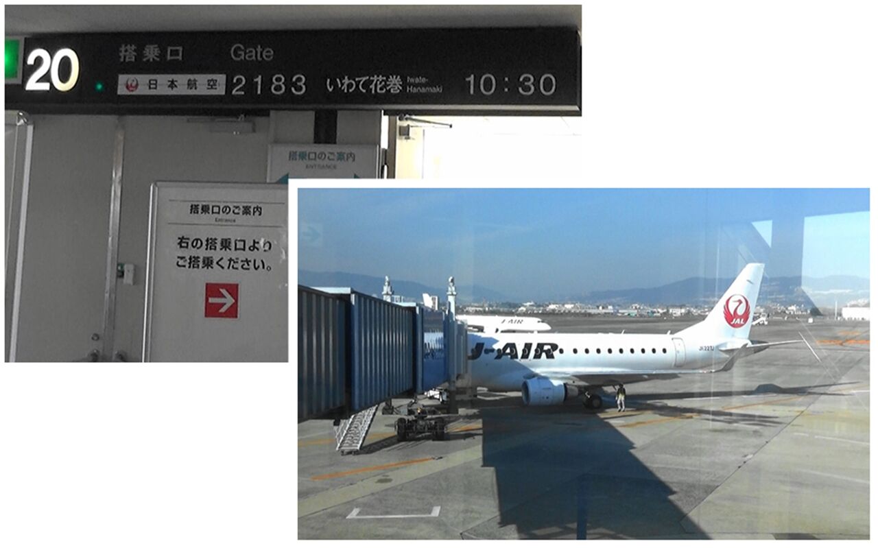 今年も12月になったので、源泉掛け流しの雪見風呂を期待して、大阪伊丹から10時30分発の「いわて花巻」行のJAL2183便に搭乗。