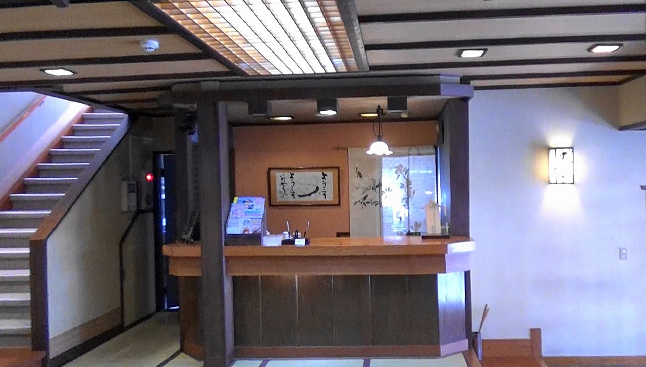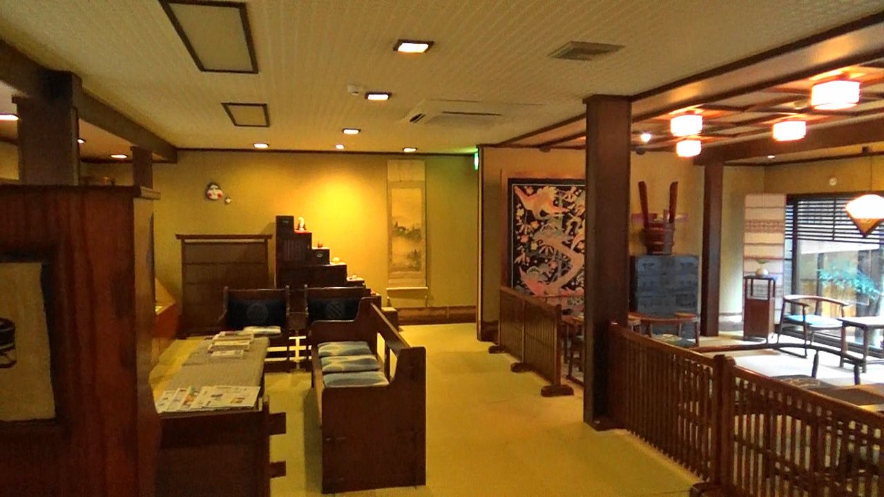 3階建ての旅館 岩井屋玄関から中に入ると右手にフロント、