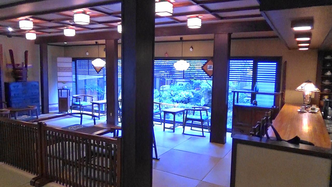 ロビーラウンジ&中庭チェックインの手続きが終わるとフロント左手奥の階段で二階へ、