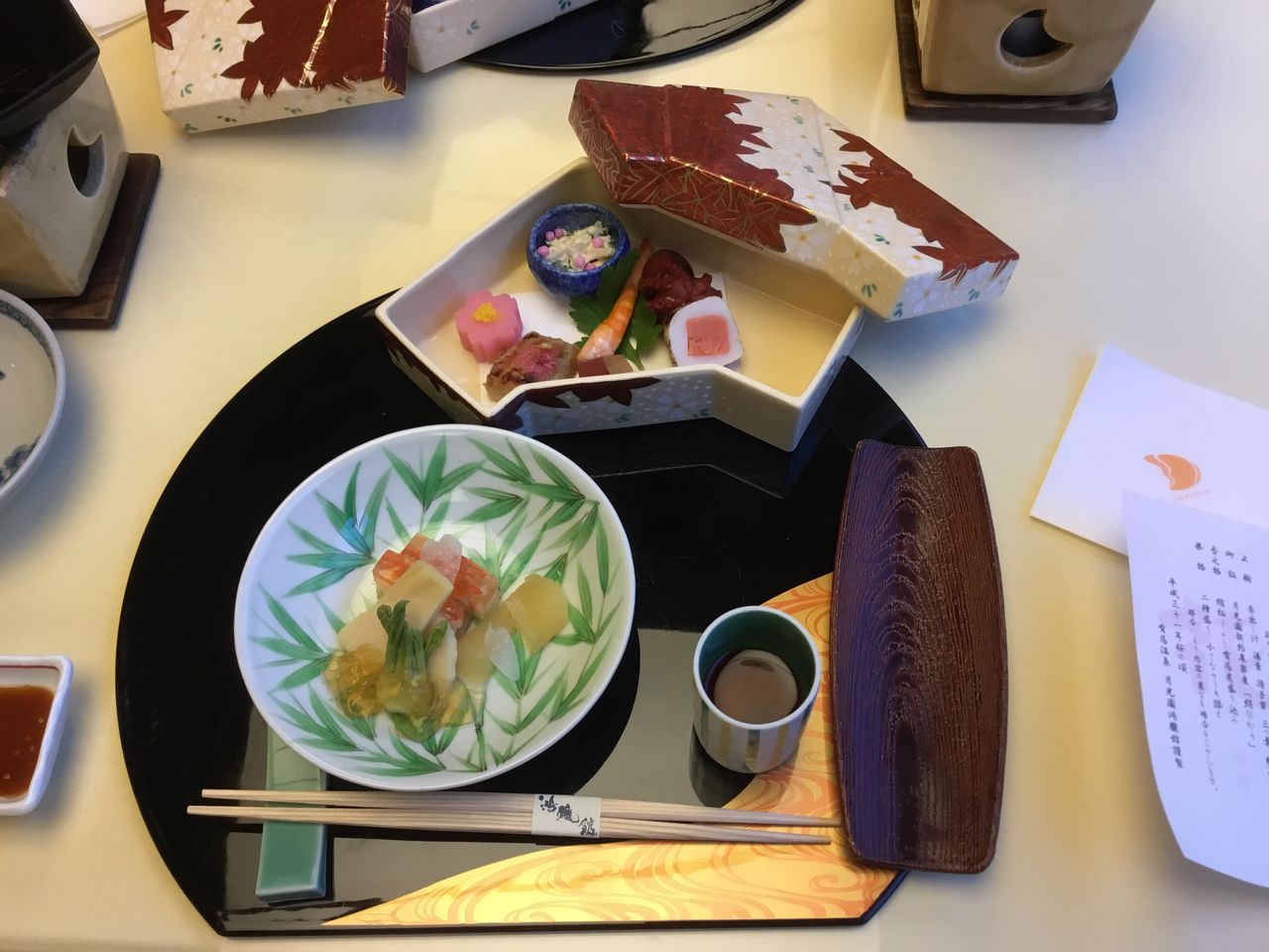 夕食には明石の海の幸、丹波の山の幸が使用された伝統の会席料理を食しました。