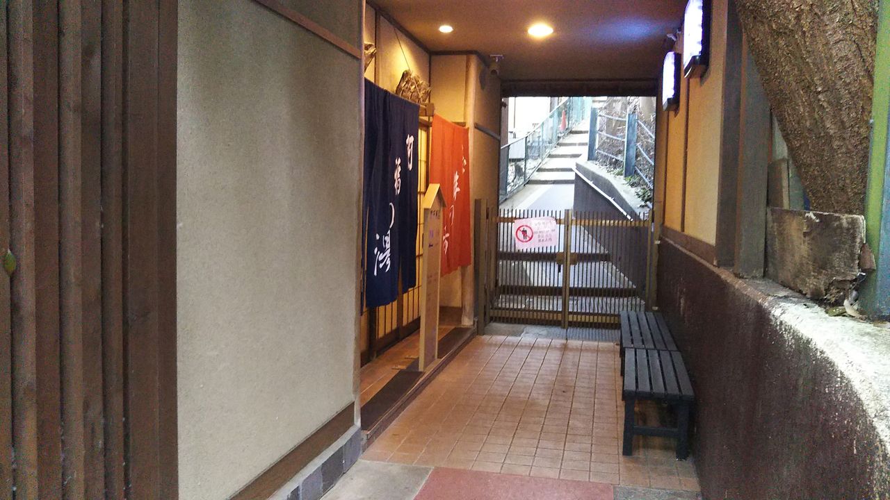 赤い通路の終点に男女別の温泉入口へ到達。