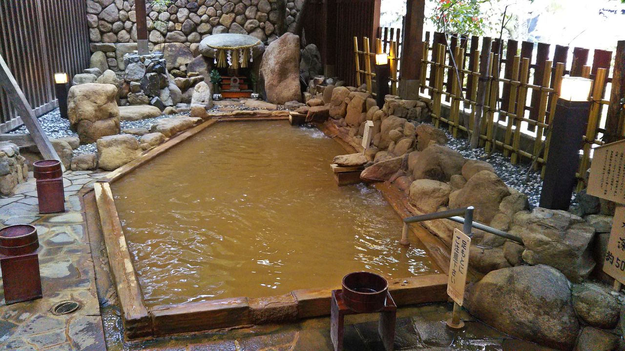 ここでは「金泉赤湯」と名付けられており、下の説明板に赤湯の原因はお湯に含まれる鉄分が空気に触れ酸化第二鉄に変化するためと...