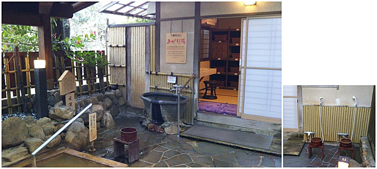 脱衣場近くには赤湯を洗い落とすあがり湯や、洗い場なども装備されています。