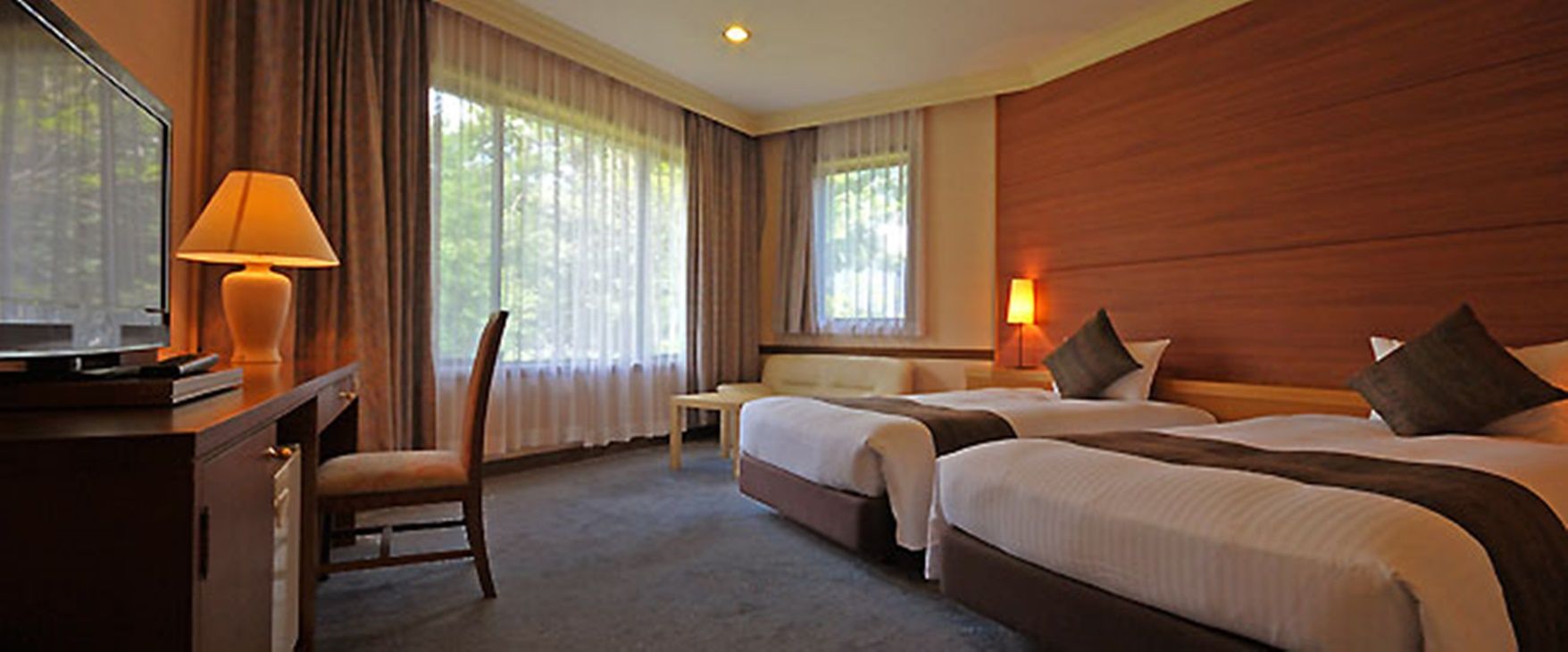 フロント&ロビーロビーに入った途端、グリーンの芝生の中庭が開け、正にアメリカのリゾート・ホテルの雰囲気です。