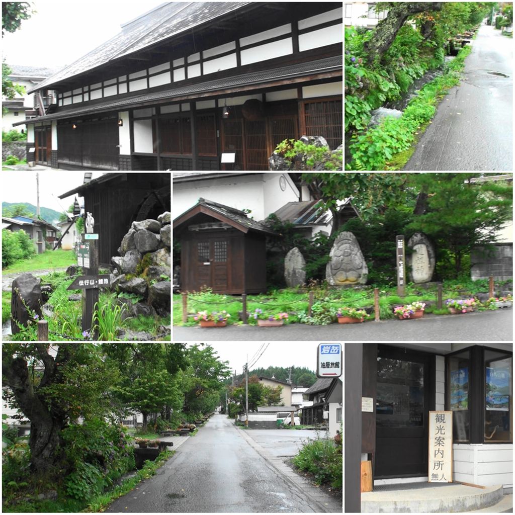水車小屋と薬師堂まで歩いてみましたが、ここ岩岳(白馬)はよく知られたスキー場で、冬には多くのスキー客で賑わうようですが、雪のない季節はひっそりと静かな佇まいとなり、旅館などの立ち並ぶ集落に小川が流れ、「せせらぎの里」と地元で云われているようです。ただ、ここの観光案内所・無人の看板に唖然