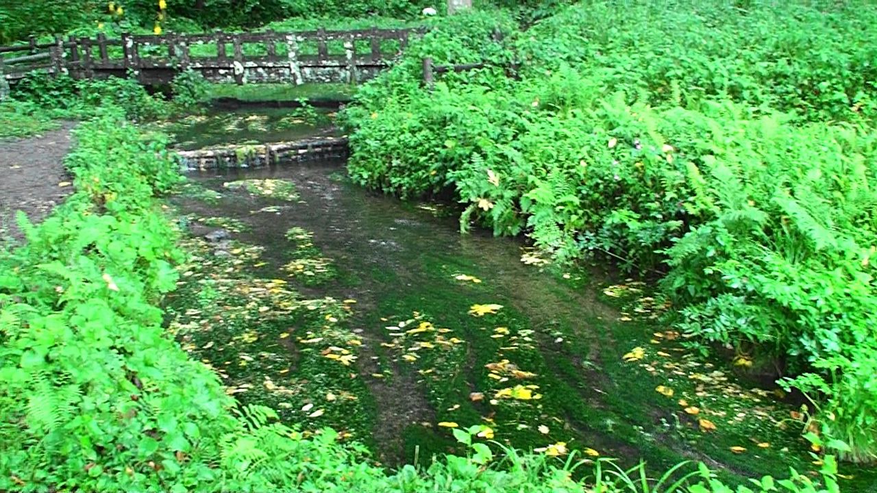 案内板から約10分程で、日本の名水百選の石碑へ(湧水の水温が年平均9℃)。